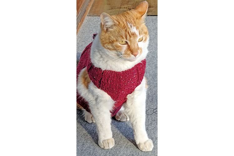 冬の装いニャ  あったかいニャ くーちゃん7歳 うちの猫のベストを作りました。マッチョ猫です。 ネズミ、モグラ、小鳥など捕る狩人猫です。